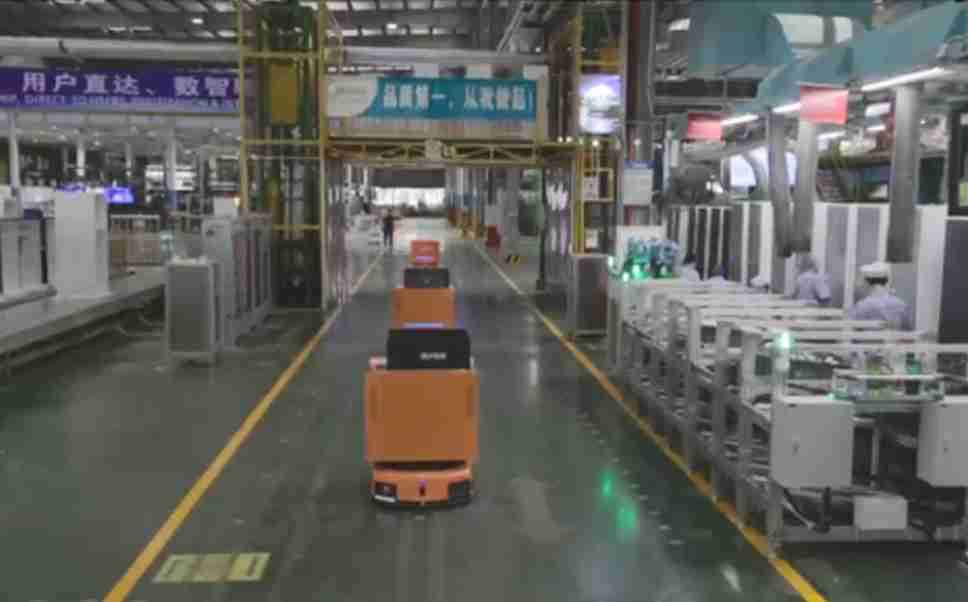 为车载冰箱物流配送打造的智能解决方案,,,,包含产中物流通过潜伏举升AMR搬运至线边,,,产后成品物流智能仓储,,,流程包含产中物流智能齐套入库,,线边安灯叫料AMR智能配送至线边,,,,成品入库、、、、出库,,,,通过无人堆高车机器人,,,,智能仓储管理替代人工作业管理,,,,实现更高存储、、、更高效率、、、、更具柔性化的解决方案。。。