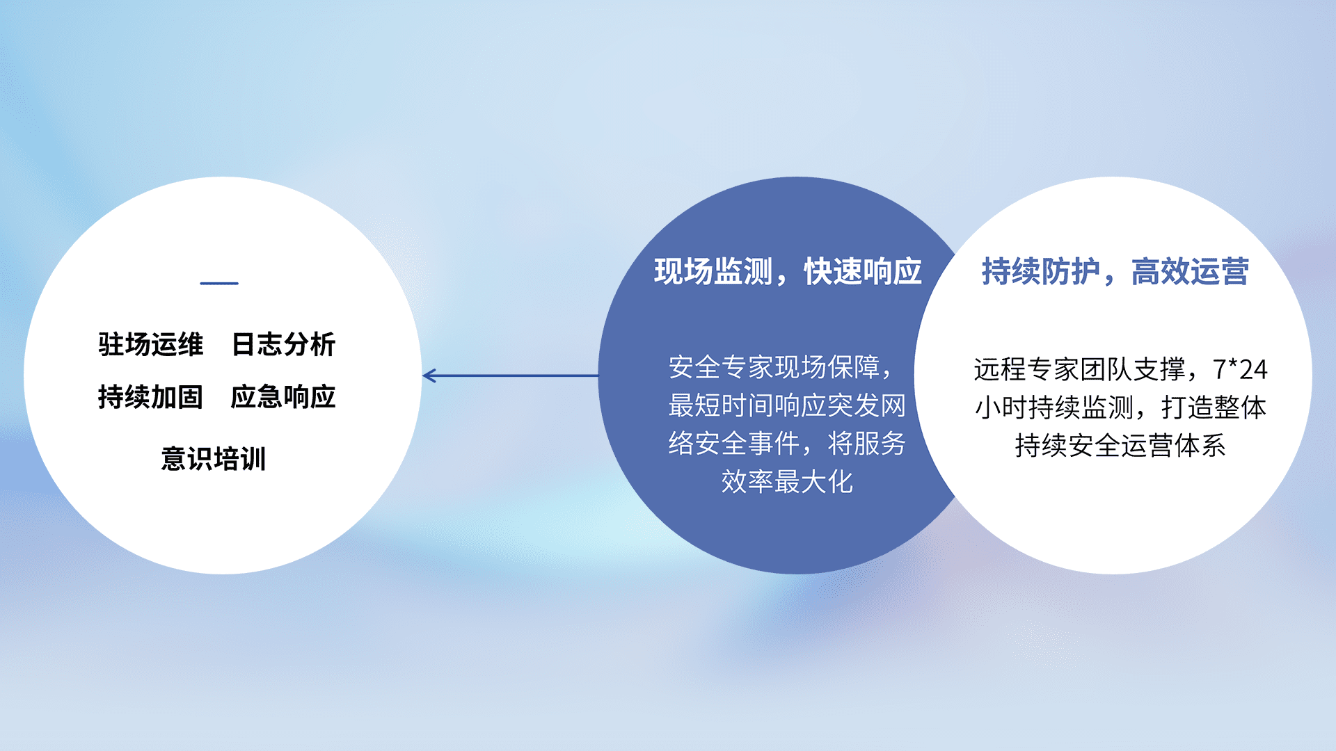 针对客户行业特性,,提供专属的一站式安全管理服务,,,帮助客户全面感知网络空间威胁,,,,通过安全专家的线上、、、线下防护支持,,实现风险闭环,,将安全保障常态化,,,,为客户打造常态化安全运维运营服务。。。